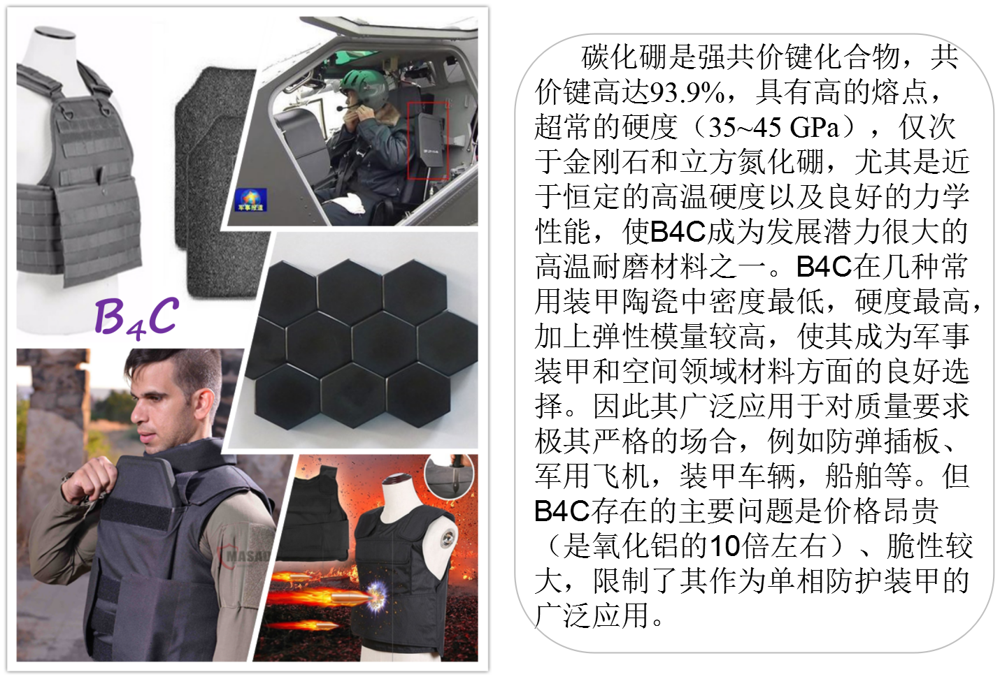 國內(nèi)外現(xiàn)階段主要使用的特種防彈陶瓷有B4C、Al2O3、SiC、TiB2、AlN、Si3N4、Sialon等。