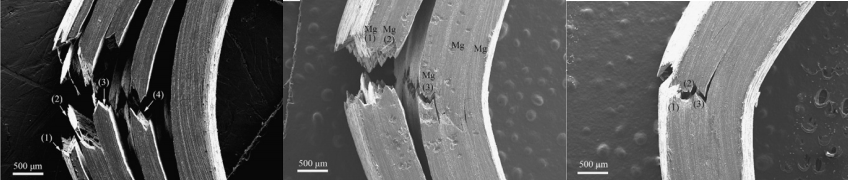 隨著科學(xué)技術(shù)的發(fā)展和進步,對材料的性能要求也越來越高,傳統(tǒng)材料由于結(jié)構(gòu)單一,綜合性能不夠突出,難以滿足對多性能耦合要求的服役環(huán)境。但是由多種不同性能的材料通過物理或者化學(xué)方法結(jié)合制備而成的復(fù)合材料,既能保持各組元材料獨特的性能,也能取長補短,產(chǎn)生協(xié)同效應(yīng),使新制備的復(fù)合材料綜合性能遠優(yōu)于各組員材料的性能,從而滿足不同復(fù)雜工況的要求。自然界中也有很多類似的結(jié)構(gòu),軟/硬相結(jié)合的多層結(jié)構(gòu)可以提高其強度硬度的同時也能有很好的韌性。下圖為貝類外殼的層狀結(jié)構(gòu)。