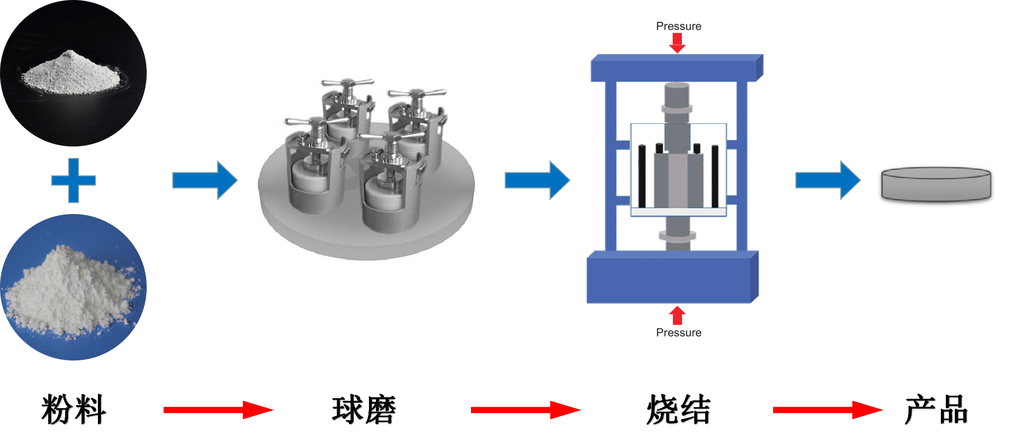 將原料粉體松裝如模具中,壓實(shí)后在真空狀態(tài)或惰性氣體的保護(hù)下,熱壓燒結(jié)制備。