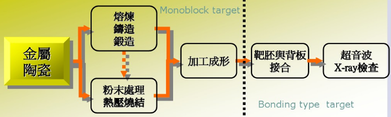 粉末冶金法;將一定成分配比的合金原料熔煉,澆注成鑄錠后再粉碎,將粉碎形成的粉末經(jīng)等靜壓成形,再高溫?zé)Y(jié),最終形成靶材。常用的粉末冶金工藝包括冷壓、真空熱壓和熱等靜壓等,而真空熱壓燒結(jié)可以制備大尺寸、高致密度的平面靶材,應(yīng)用最為廣泛。